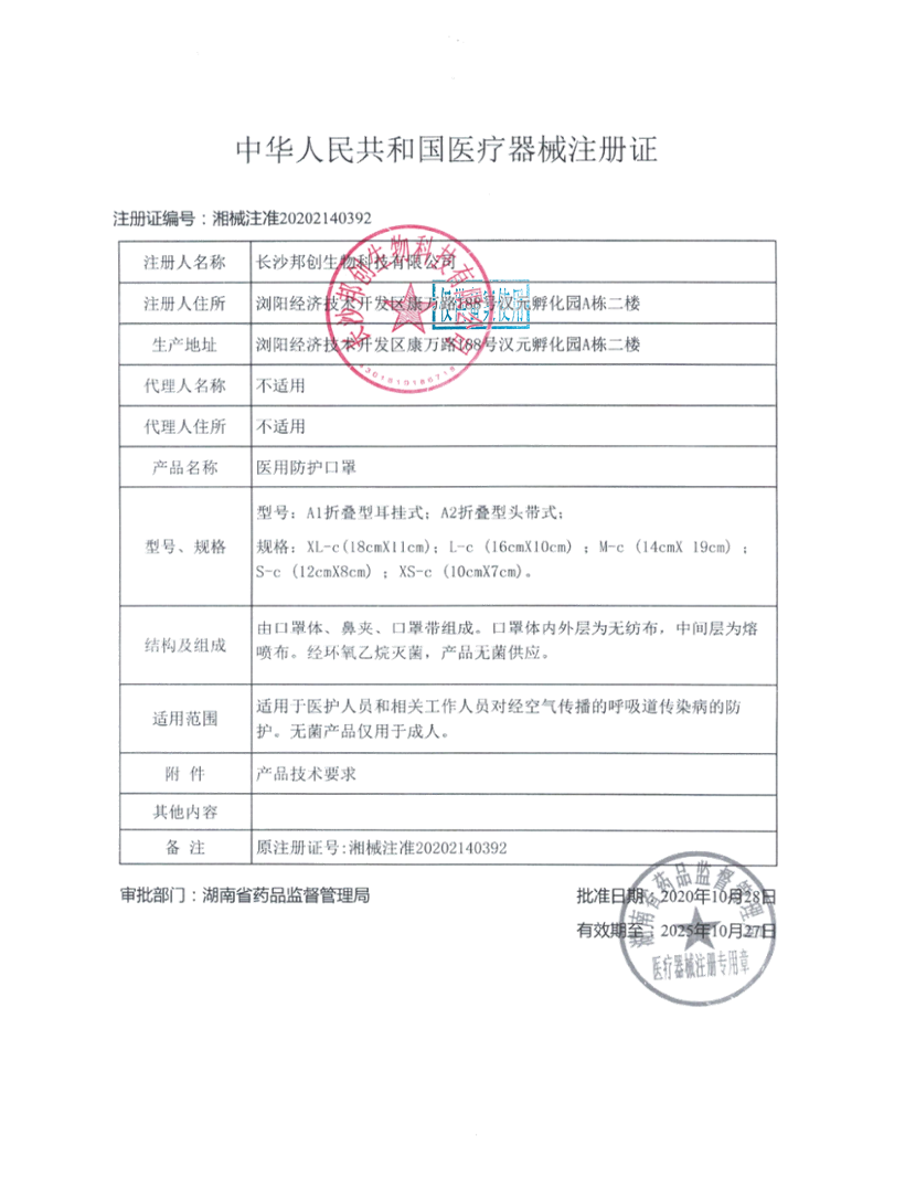 醫(yī)用防護(hù)口罩(無(wú)菌型)--注冊(cè)證
