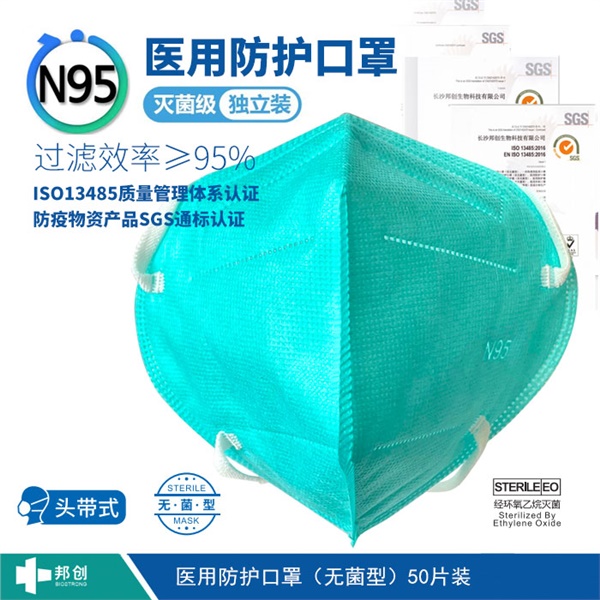 邦創(chuàng)N95口罩,醫(yī)用防護無菌口罩,獨立包裝,N95折疊式1只/袋共50只/盒